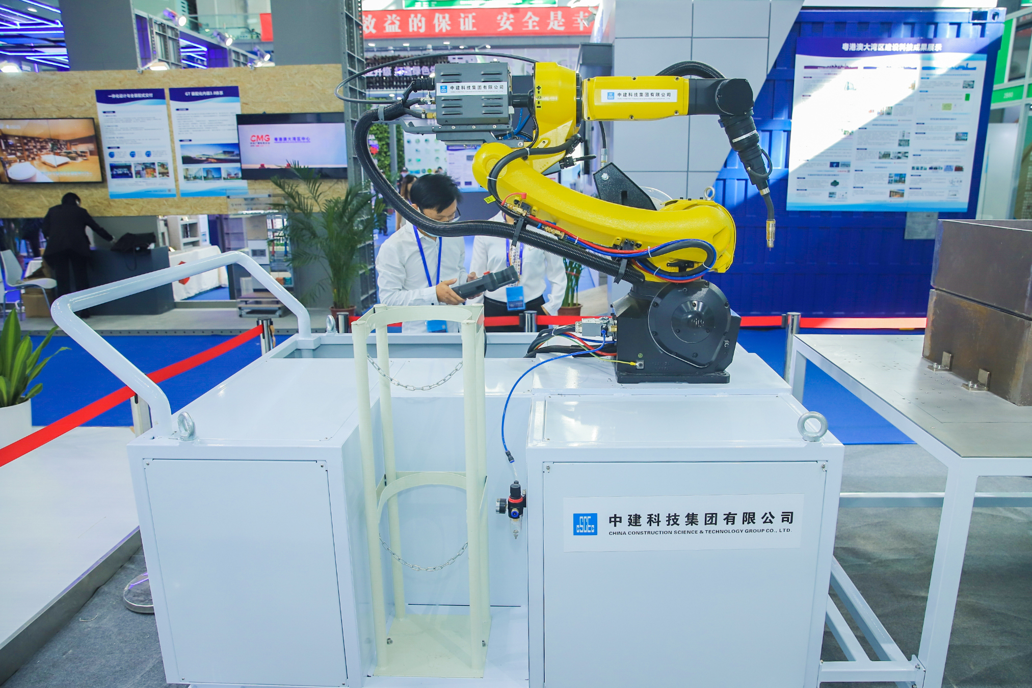該生產(chǎn)線為國(guó)內(nèi)首創(chuàng),填補(bǔ)了建筑工業(yè)化領(lǐng)域柔性生產(chǎn)技術(shù)空白,解決了模塊化建筑固定產(chǎn)線產(chǎn)能超過需求,投資回報(bào)率低的問題。此次展示為中建科技自主設(shè)計(jì)研發(fā)的一種自動(dòng)、新型移動(dòng)焊接機(jī)器人系統(tǒng)。