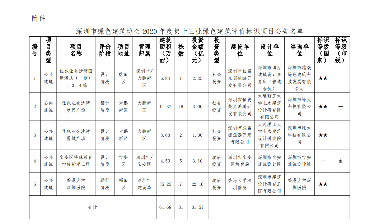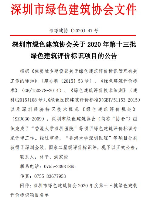 深圳市綠色建筑協(xié)會關于2020年度第十三批綠色建筑評價標識項目的公告