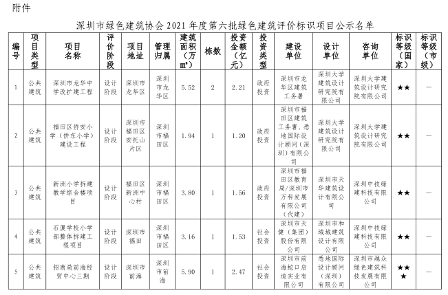 深圳市綠色建筑協(xié)會關于2021年第六批綠色建筑評價標識項目的公告