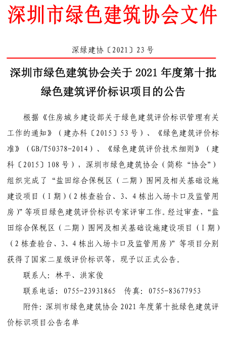 深圳市綠色建筑協(xié)會關(guān)于2021年第十批綠色建筑評價標識項目的公告