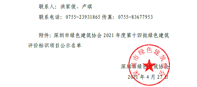 深圳市綠色建筑協(xié)會關(guān)于2021 年第十四批 綠色建筑評價標識項目的公示