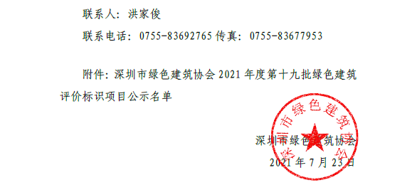 深圳市綠色建筑協(xié)會(huì)關(guān)于2021年第十九批綠色建筑評(píng)價(jià)標(biāo)識(shí)項(xiàng)目的公示