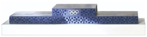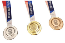 <圖:回收金屬垃圾制成獎牌、回收24.5噸可再生塑料制成“二手”領(lǐng)獎臺>