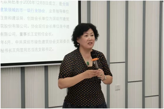 深圳市綠色建筑協(xié)會黨支部書記、秘書長王向昱向大家介紹了協(xié)會的發(fā)展歷程和工作情況。她動情地向大家分享了協(xié)會的緣起與發(fā)展壯大的故事。她介紹,協(xié)會是一個“混血組織”,會員單位涵蓋全建筑生命周期,包括開發(fā)單位、規(guī)劃設(shè)計單位、施工企業(yè)和材料生產(chǎn)企業(yè)等,還有金融機(jī)構(gòu)、管理咨詢公司和律師事務(wù)所等為綠色建筑提供配套服務(wù)的機(jī)構(gòu)。這種基于行業(yè)上下游之間組成的“混血”協(xié)會架構(gòu),對于會員間的交流合作具有得天獨(dú)厚的優(yōu)勢。希望會員之間能夠充分利用協(xié)會平臺,推動行業(yè)資源的開發(fā)、整合和共享,在當(dāng)前“碳達(dá)峰碳中和”目標(biāo)的背景下,助力綠色建筑的健康、可持續(xù)發(fā)展。隨后,協(xié)會秘書處各部門負(fù)責(zé)人為大家介紹了各部門職能及工作開展情況,并重點(diǎn)講解了協(xié)會為行業(yè)發(fā)展所做的工作及為會員所提供的各項(xiàng)服務(wù)。