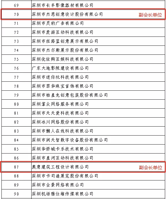 為進一步推動文化產(chǎn)業(yè)各領(lǐng)域領(lǐng)軍企業(yè)發(fā)展,更好發(fā)揮領(lǐng)軍企業(yè)的示范帶動作用,推動深圳文化產(chǎn)業(yè)高質(zhì)量發(fā)展 ,深圳市文化廣電旅游體育局于近日發(fā)布“深圳文化企業(yè)100強(2020-2021)”名單。協(xié)會副會長單位——深圳市建筑設(shè)計研究總院有限公司、深圳市華陽國際工程設(shè)計股份有限公司、香港華藝設(shè)計顧問(深圳)有限公司、深圳市杰恩創(chuàng)意設(shè)計股份有限公司、奧意建筑工程設(shè)計有限公司;理事單位——深圳華森建筑與工程設(shè)計顧問有限公司;會員單位——艾奕康設(shè)計與咨詢(深圳)有限公司、梁黃顧建筑設(shè)計(深圳)有限公司、深圳市歐博工程設(shè)計顧問有限公司等共9家企業(yè)入選“深圳文化企業(yè)100強(2020-2021)”名單。