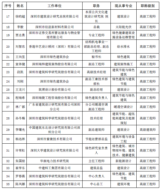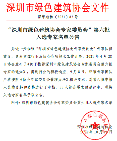 “深圳市綠色建筑協(xié)會專家委員會”第六批入選專家名單公告