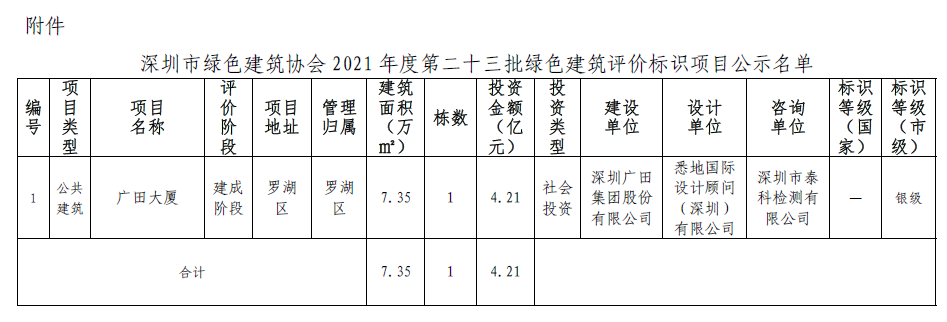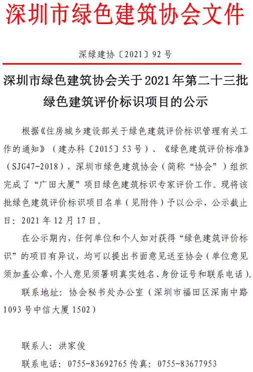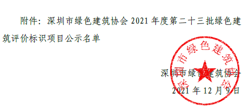 深圳市綠色建筑協(xié)會(huì)關(guān)于2021 年第二十三批綠色建筑評(píng)價(jià)標(biāo)識(shí)項(xiàng)目的公示