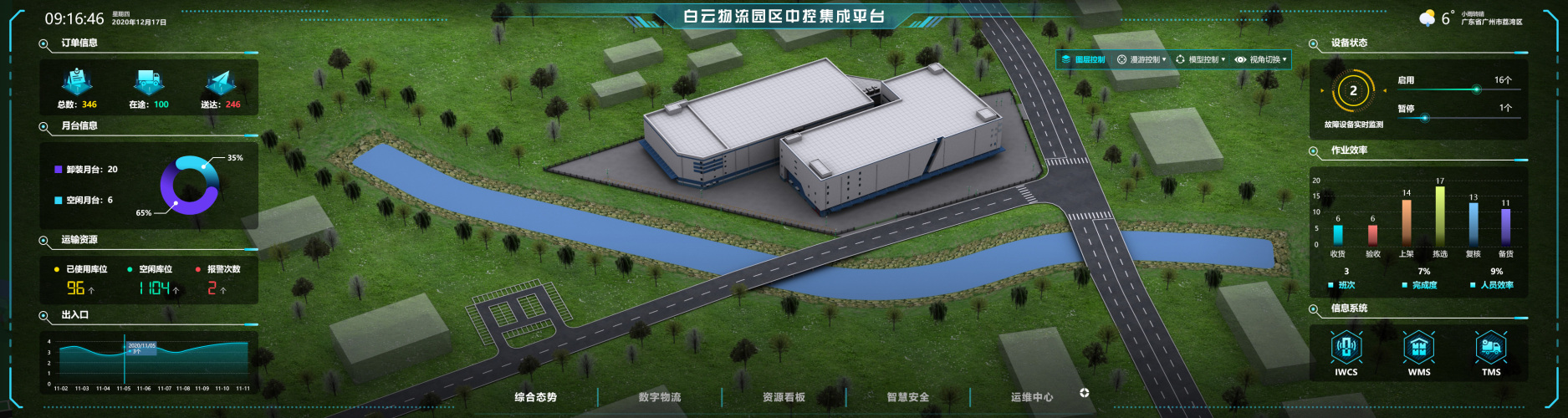 此項(xiàng)目是廣藥生物醫(yī)藥城白云園區(qū)物流項(xiàng)目(一期)弱電系統(tǒng)項(xiàng)目的定制開發(fā),系統(tǒng)通過公司自己研發(fā)的SmartBuilding智慧建筑管理平臺(tái)作為支撐,實(shí)現(xiàn)三維可視化的管理。平臺(tái)集成業(yè)務(wù)報(bào)表系統(tǒng)、智能倉儲(chǔ)控制系統(tǒng)、物流運(yùn)輸管理系統(tǒng)、倉儲(chǔ)管理系統(tǒng)、物流配送系統(tǒng)、物流作業(yè)系統(tǒng)、信息發(fā)布系統(tǒng)、視頻監(jiān)控系統(tǒng)、周界報(bào)警系統(tǒng)、巡檢系統(tǒng)、門禁系統(tǒng)、車輛閘機(jī)等系統(tǒng)。以BIM三維模型為依托,通過數(shù)字孿生技術(shù),將全景業(yè)務(wù)、園區(qū)安全、物流運(yùn)營、資源看板等板塊的傳統(tǒng)形式與三位模型智慧結(jié)合,實(shí)現(xiàn)集中展示、集約管理、信使聯(lián)動(dòng)的智慧平臺(tái)。