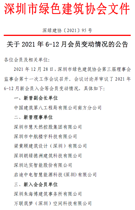 關于2021年6-12 月會員變動情況的公告