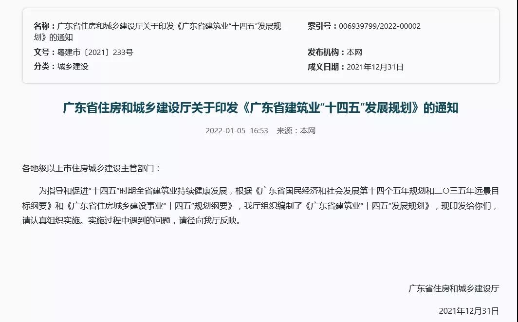 “十四五”時(shí)期是我省奮力在全面建設(shè)社會主義現(xiàn)代化國家新征程中走在全國前列、創(chuàng)造新的輝煌的起步階段,也是我省由“建筑業(yè)大省”邁向“建筑業(yè)強(qiáng)省”的關(guān)鍵時(shí)期。建筑業(yè)作為國民經(jīng)濟(jì)的支柱產(chǎn)業(yè),能夠?yàn)闃?gòu)建以國內(nèi)大循環(huán)為主體、國內(nèi)國際雙循環(huán)相互促進(jìn)的新發(fā)展格局提供有力支撐。根據(jù)《廣東省國民經(jīng)濟(jì)和社會發(fā)展第十四個(gè)五年規(guī)劃和二○三五年遠(yuǎn)景目標(biāo)綱要》《廣東省住房城鄉(xiāng)建設(shè)事業(yè)“十四五”規(guī)劃綱要》等要求,特編制《廣東省建筑業(yè)“十四五”發(fā)展規(guī)劃》。規(guī)劃全面回顧“十三五”期間全省建筑業(yè)發(fā)展的主要成就和存在問題,深刻分析新時(shí)期的機(jī)遇和挑戰(zhàn),提出“十四五”時(shí)期全省建筑業(yè)發(fā)展的總體要求、發(fā)展目標(biāo)、主要任務(wù)和行動(dòng)舉措,是全省建筑業(yè)高質(zhì)量發(fā)展的綱領(lǐng)性、指導(dǎo)性規(guī)劃。