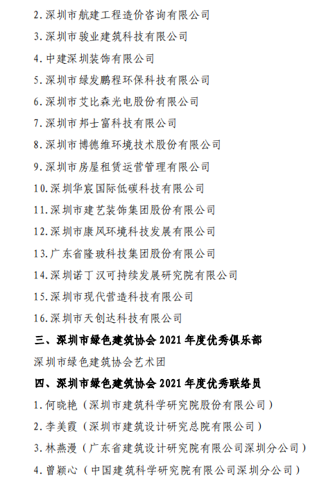 關于深圳市綠色建筑協(xié)會2021度評優(yōu)表彰情況的公告
