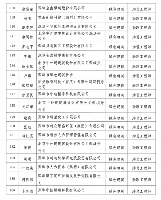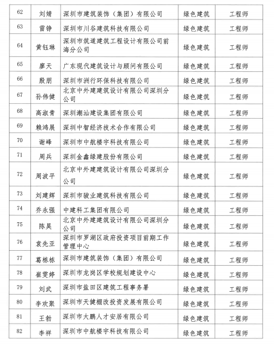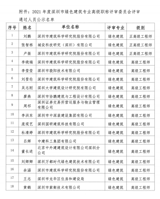 2021年度深圳市綠色建筑專業(yè)高級職稱評審委員會評審通過人員公示