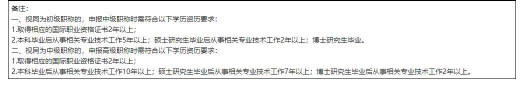 據(jù)通知文件,持有《目錄》內國際職業(yè)資格證書的專業(yè)人才,不限國籍、戶籍,從事與資格證書相一致或相近的專業(yè)技術工作,且在深圳工作一年以上的,可按規(guī)定條件申報評審高一層級的職稱,其境外從業(yè)經歷可視同境內從業(yè)經歷。視同職稱不再另行換發(fā)職稱證書,僅用于申報高一層級職稱評審。