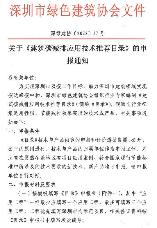 關(guān)于《建筑碳減排應(yīng)用技術(shù)產(chǎn)品目錄》的申報(bào)通知