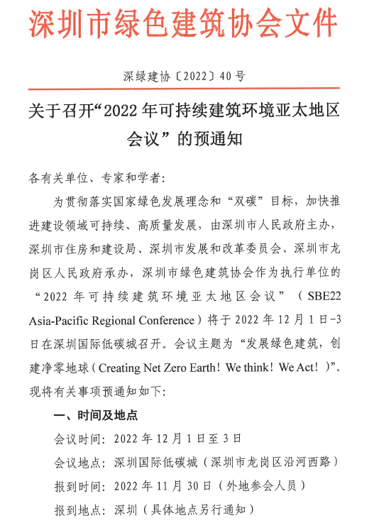 關(guān)于召開“2022年可持續(xù)建筑環(huán)境亞太地區(qū)會議”的預(yù)通知