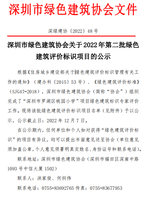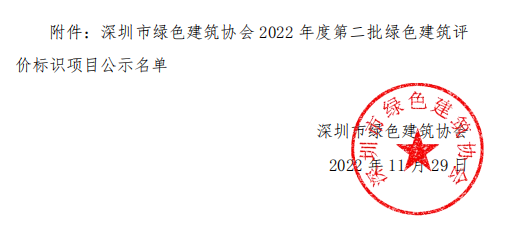 深圳市綠色建筑協(xié)會關(guān)于2022年第二批綠色建筑評價標(biāo)識項目的公示