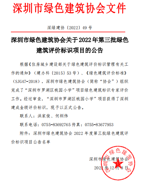 深圳市綠色建筑協(xié)會關(guān)于2022年第三批綠色建筑評價標(biāo)識項目的公告