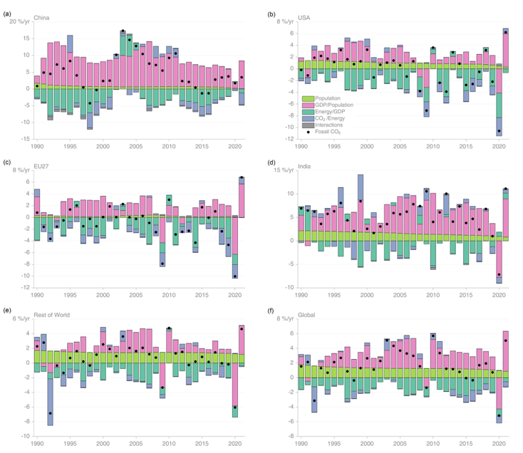 圖|各國(guó)及地區(qū)碳排放主要影響因素分解圖