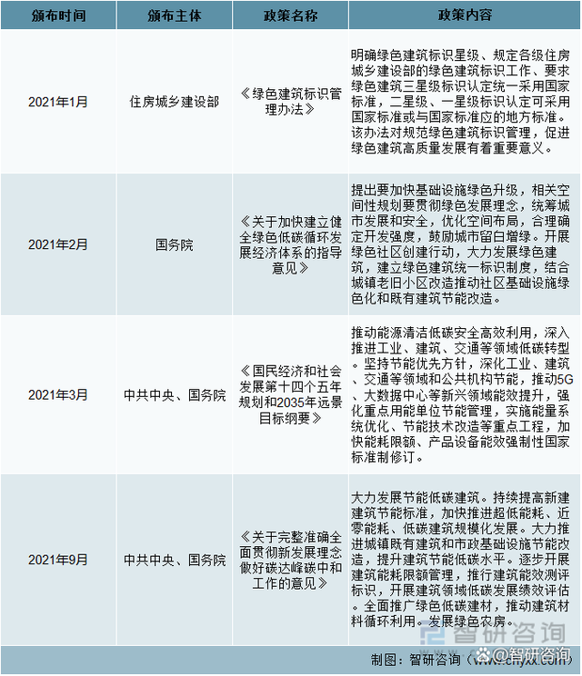 日前,智研咨詢發(fā)布報告,對近年來國家及地方綠色建筑發(fā)展政策進行匯總。報告指出,政策的出臺實施對繼續(xù)推動綠色建筑行業(yè)發(fā)展,落實城鄉(xiāng)建設(shè)安全、綠色、智慧、宜居等發(fā)展目標具有重要意義。
