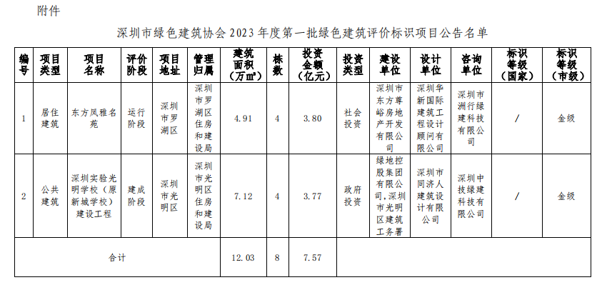 深圳市綠色建筑協(xié)會(huì)關(guān)于2023年第一批綠色建筑評(píng)價(jià)標(biāo)識(shí)項(xiàng)目的公告