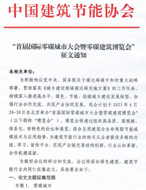 【轉(zhuǎn)發(fā)】首屆國際零碳城市大會暨零碳建筑博覽會征文通知