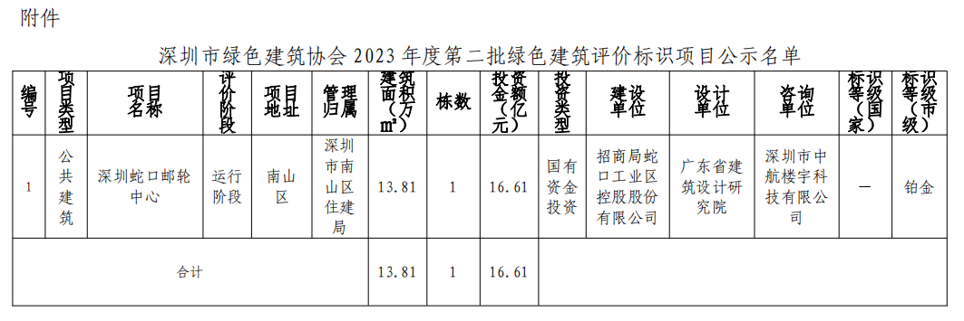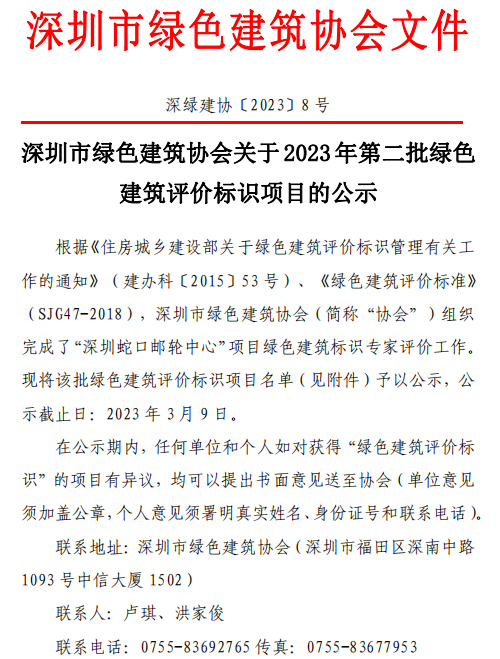 深圳市綠色建筑協(xié)會關(guān)于2023年第二批綠色建筑評價(jià)標(biāo)識項(xiàng)目的公示