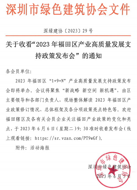 關(guān)于收看“2023年福田區(qū)產(chǎn)業(yè)高質(zhì)量發(fā)展支持政策發(fā)布會(huì)”的通知