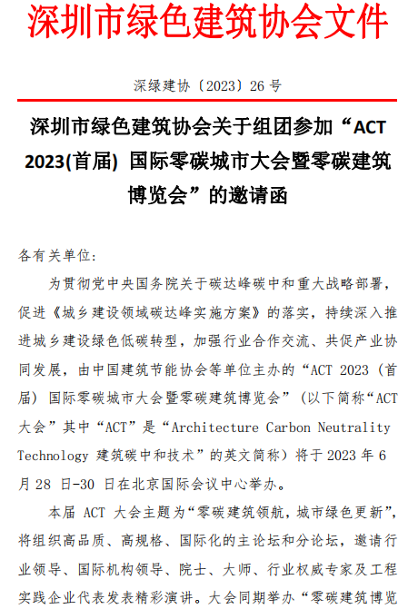 附件:關(guān)于舉辦 ACT 2023(首屆)國際零碳城市大會暨零碳建筑博覽會的通知