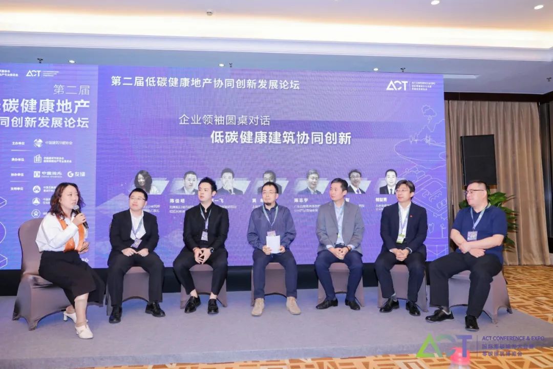 協(xié)會副會長、香港華藝設(shè)計(jì)顧問(深圳)有限公司執(zhí)行總建筑師、創(chuàng)新研究院執(zhí)行院長陳竹(左一)在“第二屆低碳健康地產(chǎn)協(xié)同創(chuàng)新發(fā)展論壇”中主持企業(yè)領(lǐng)袖圓桌對話,招商局蛇口工業(yè)區(qū)控股股份有限公司城市研究院院長助理陳佳明(左二)參與對話