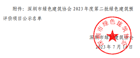 深圳市綠色建筑協(xié)會(huì)關(guān)于2023年第二批綠色建筑預(yù)評價(jià)標(biāo)識(shí)項(xiàng)目的公示
