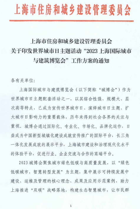 轉(zhuǎn):“2023上海國際與建筑博覽會”工作方案的通知