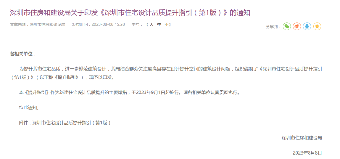 近日,深圳市住房和建設(shè)局印發(fā)《深圳市住宅設(shè)計(jì)品質(zhì)提升指引(第1版)》(簡(jiǎn)稱(chēng)《指引》)。《指引》將于9月1日起施行,全市新建住宅項(xiàng)目設(shè)計(jì)應(yīng)按《指引》執(zhí)行。