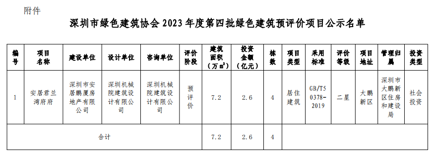 深圳市綠色建筑協(xié)會關于2023年第四批綠色建筑預評價項目的公示