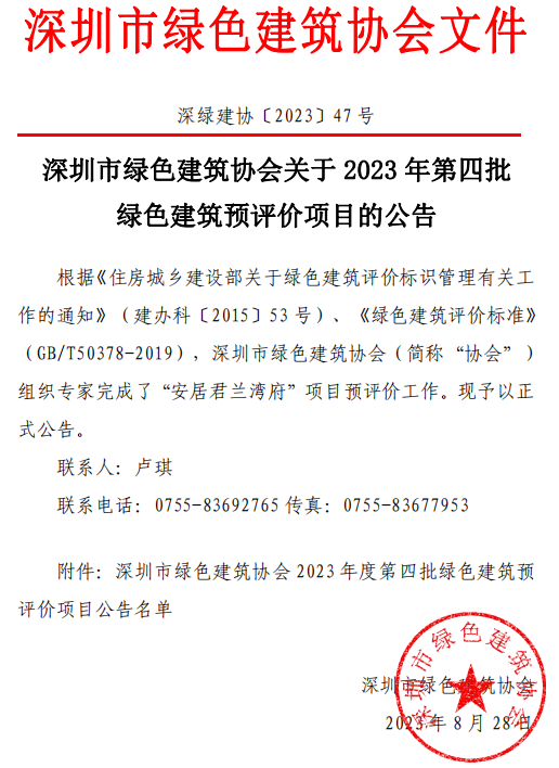 深圳市綠色建筑協(xié)會關(guān)于2023年第四批綠色建筑預(yù)評價項目的公告