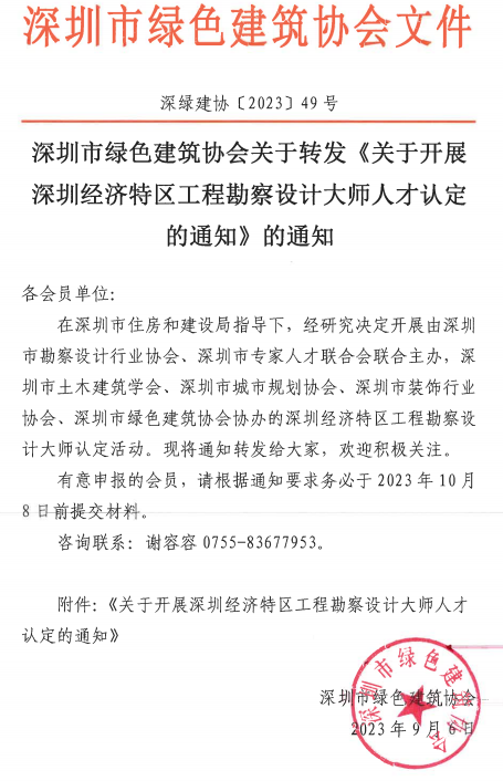 轉(zhuǎn)發(fā)《關(guān)于開(kāi)展深圳經(jīng)濟(jì)特區(qū)工程勘察設(shè)計(jì)大師人才認(rèn)定的通知》