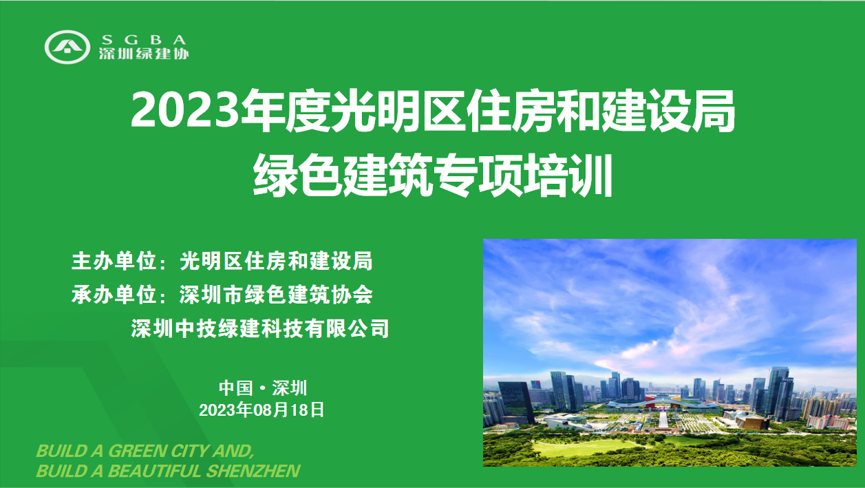 8月18日,由深圳市光明區(qū)住房和建設(shè)局主辦,深圳市綠色建筑協(xié)會、深圳中技綠建科技有限公司承辦的“2023年度光明區(qū)住房和建設(shè)局綠色建筑專項培訓(xùn)”在線上舉行。培訓(xùn)圍繞“《深圳經(jīng)濟特區(qū)綠色建筑條例》等相關(guān)政策及近零能耗建筑、綠色建筑預(yù)評價”、“海綿城市”、“裝配式建筑”等內(nèi)容進行分享,來自建設(shè)領(lǐng)域的管理、規(guī)劃、設(shè)計、施工、運營等相關(guān)單位的1200余人次參加了本次培訓(xùn)。