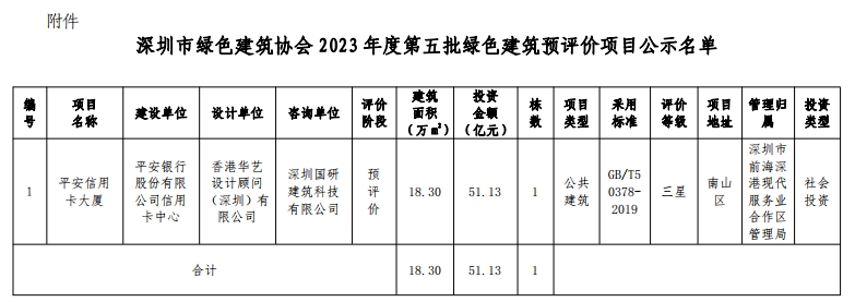 深圳市綠色建筑協(xié)會關(guān)于2023年第五批綠色建筑預評價標識項目的公示