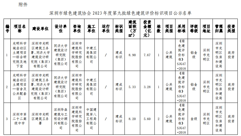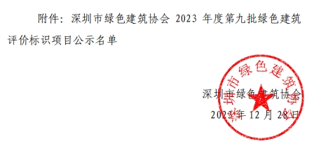 深圳市綠色建筑協(xié)會(huì)關(guān)于2023年第九批綠色建筑評(píng)價(jià)標(biāo)識(shí)項(xiàng)目的公示