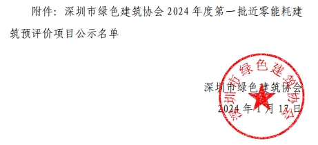 深圳市綠色建筑協(xié)會關于2024年度第一批近零能耗建筑預評價項目的公示