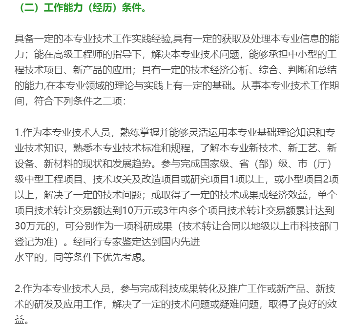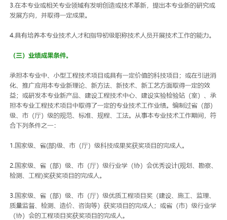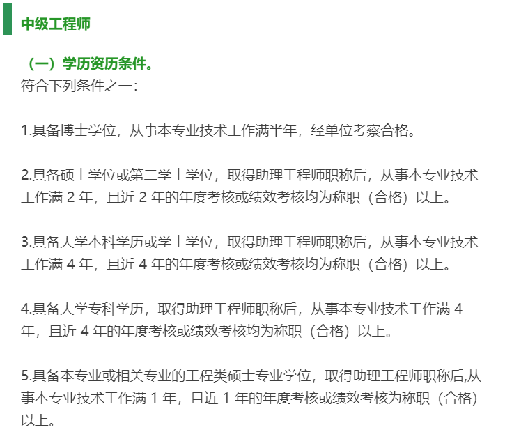 根據(jù)《廣東省建筑工程技術(shù)人才職稱評(píng)價(jià)改革實(shí)施方案》(粵人社規(guī)【2019】33號(hào))的具體要求,中級(jí)工程師申報(bào)條件如下: