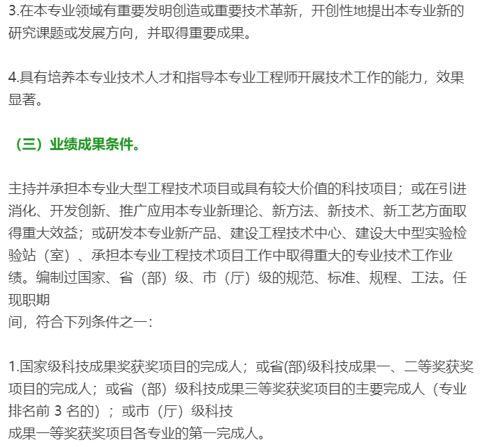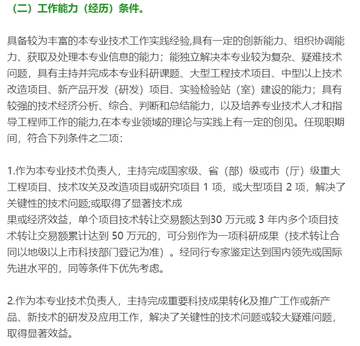 根據(jù)《廣東省建筑工程技術(shù)人才職稱評價改革實施方案》(粵人社規(guī)【2019】33號)的具體要求,高級工程師申報條件如下: