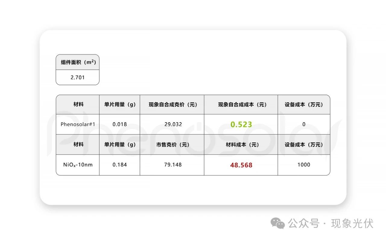 不僅如此,基于此無(wú)預(yù)置空穴傳輸層的電池結(jié)構(gòu),再經(jīng)過(guò)對(duì)剩余功能層和封裝材料的進(jìn)一步優(yōu)化處理,鈣鈦礦光伏組件的穩(wěn)定性也得到了極大改善,在高溫85℃持續(xù)光照工作2000h和極端冷熱沖擊-40℃至85℃160個(gè)循環(huán)的情況下,都能保持非常高的工作狀態(tài),電池性能仍能保持初始值95%以上。通過(guò)加速老化模擬試驗(yàn)獲得的數(shù)據(jù)為完全替代NiOx及其它空穴傳輸層在工業(yè)制備組件中的必要預(yù)置提供了重要依據(jù)。同時(shí)通過(guò)對(duì)比濺射N(xiāo)iOx工藝的鈣鈦礦光伏組件生產(chǎn)工藝,單片鈣鈦礦光伏組件制造成本降低18%~20%,是鈣鈦礦光伏組件量產(chǎn)工藝的最佳技術(shù)路線。