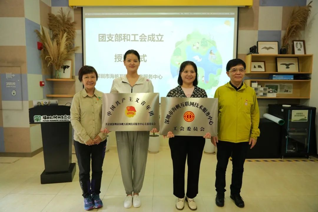 在團(tuán)支部和工會(huì)授牌儀式上,張武波同志與孫莉莉同志受托分別為深圳市海帆互聯(lián)網(wǎng)技術(shù)服務(wù)中心工會(huì)委員會(huì)、共青團(tuán)深圳市海帆互聯(lián)網(wǎng)技術(shù)服務(wù)中心支部委員會(huì)授牌,該中心成為總會(huì)聯(lián)合黨委首家以工青組織組建實(shí)現(xiàn)黨建工作覆蓋的社會(huì)組織,必將為總會(huì)黨建工作的創(chuàng)新發(fā)展注入新的活力。