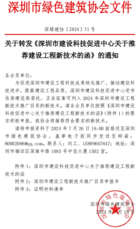 附件1:深圳市建設(shè)科技促進(jìn)中心關(guān)于協(xié)助推薦深圳市建設(shè)工程新技術(shù)的函