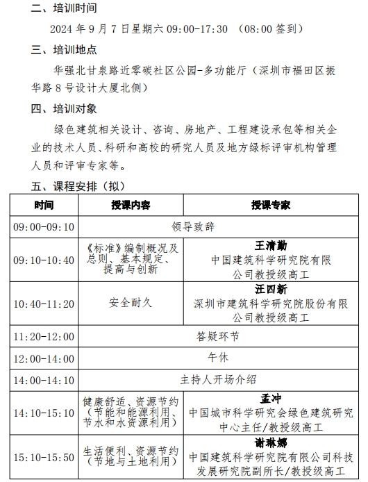 關(guān)于開(kāi)展國(guó)家標(biāo)準(zhǔn)《綠色建筑評(píng)價(jià)標(biāo)準(zhǔn)》GB/T 50378-2019(2024 年版)宣貫培訓(xùn)(南方地區(qū))的通知