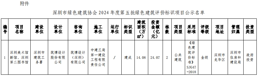深圳市綠色建筑協(xié)會(huì)關(guān)于2024年第五批綠色建筑評價(jià)標(biāo)識(shí)項(xiàng)目的公示