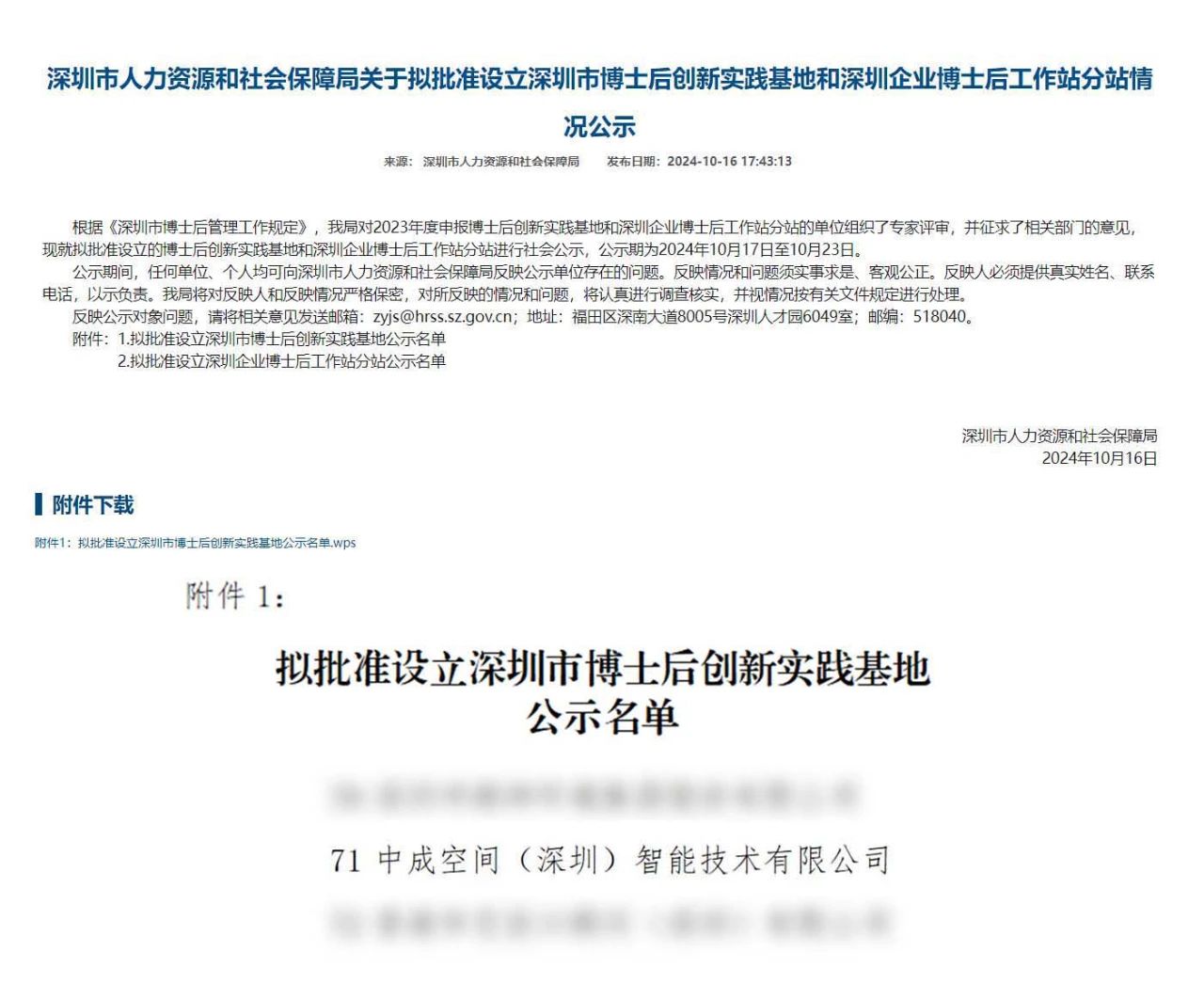 正式獲批!近日,深圳市人力資源和社會(huì)保障局,對(duì)擬批準(zhǔn)設(shè)立的博士后創(chuàng)新實(shí)踐基地和深圳企業(yè)博士后工作站分站完成社會(huì)公示,中成空間成功獲批設(shè)立深圳市博士后創(chuàng)新實(shí)踐基地。此次獲批,不僅是對(duì)中成空間科研創(chuàng)新、人才集聚能力的肯定,更是公司科研實(shí)力不斷攀升的重要里程碑。