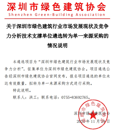 關(guān)于深圳市綠色建筑行業(yè)市場(chǎng)發(fā)展現(xiàn)狀及競(jìng)爭(zhēng)力分析技術(shù)支撐單位遴選轉(zhuǎn)為單一來源采購(gòu)的情況說明