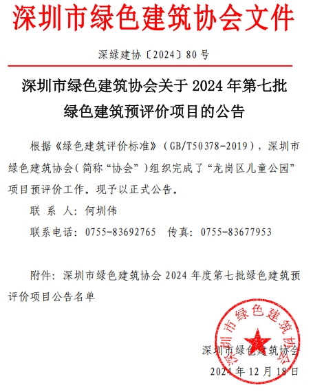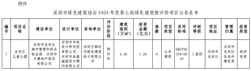 深圳市綠色建筑協(xié)會(huì)關(guān)于2024年第七批綠色建筑預(yù)評(píng)價(jià)項(xiàng)目的公告