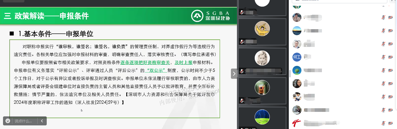 協(xié)會(huì)工作人員圍繞“2024年度深圳市綠色建筑、建筑材料專業(yè)職稱申報(bào)政策、職稱申報(bào)線上系統(tǒng)”等內(nèi)容進(jìn)行了詳細(xì)講解,并與現(xiàn)場(chǎng)人員積極互動(dòng)、答疑解惑。